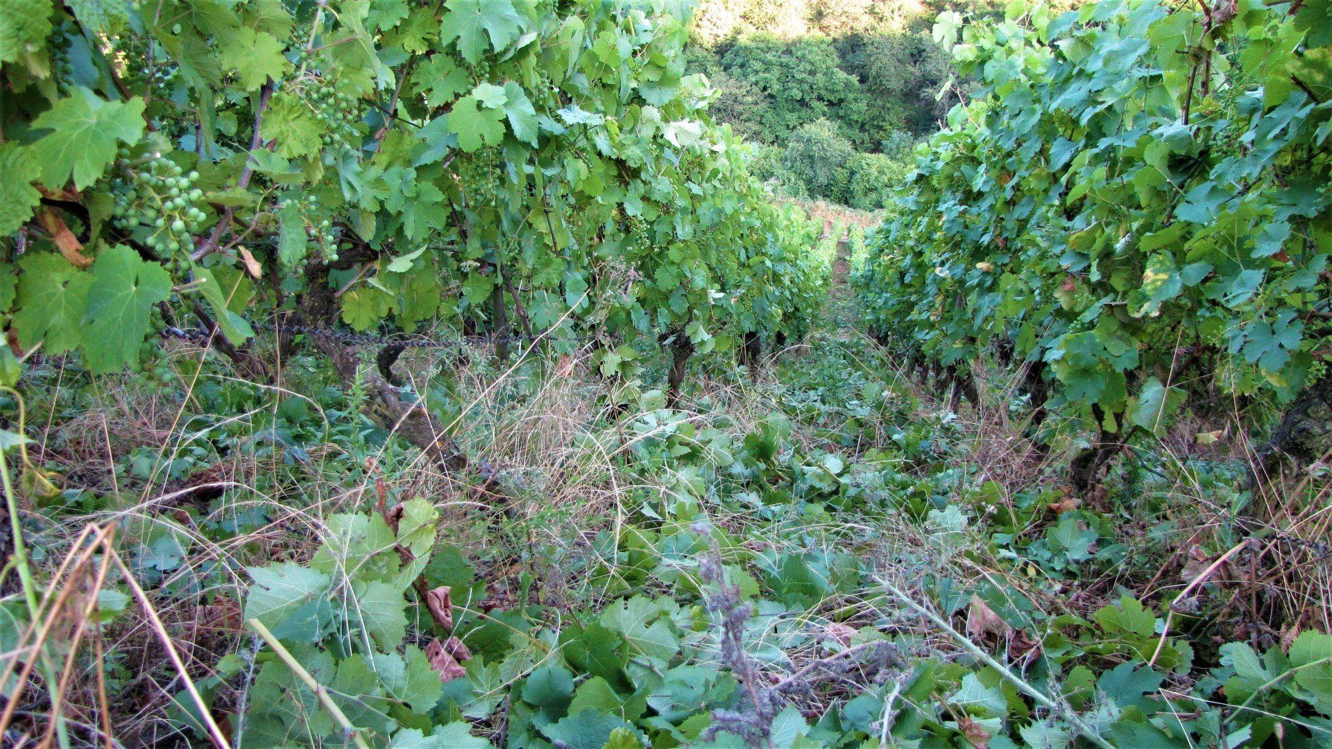 Durch die natürlich buschige Wuchsform der Reben, die insbesondere zu lockerbeerigen Traubenrispen führt, ist im Projekt-Weinberg ein vergleichsweise rasches Abtrocken der Feuchtigkeit von Regen oder Nebel gegeben. Auch kann etwaiger Befall weniger von einer zur anderen Beere überspringen. Insofern stellten sich die Trauben im Herbst 2019 im Vergleich zur Standardanlage bemerkenswert gesund dar. Ein Zuwarten mit der Ernte bereitete daher keine Probleme und erlaubte den Rebstöcken, die positiven Effekte der Oktobersonne in den Trauben noch etwas anzureichern.